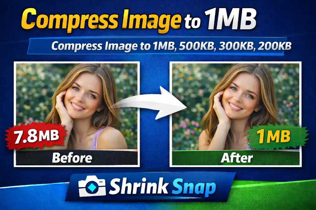 You can compress an image to 1MB online using Shrink Snap Image Tool. Simply upload your JPG, PNG, WebP, or HEIC file, select the "Compress to under 1MB" option, and download your optimized image β all without losing quality.